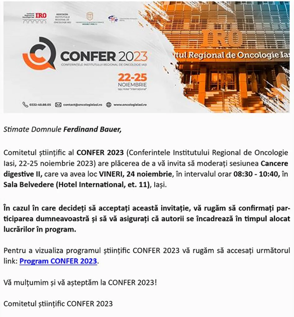 Conference 2023 – Conferences of the Regional Oncology Institute of Iasi