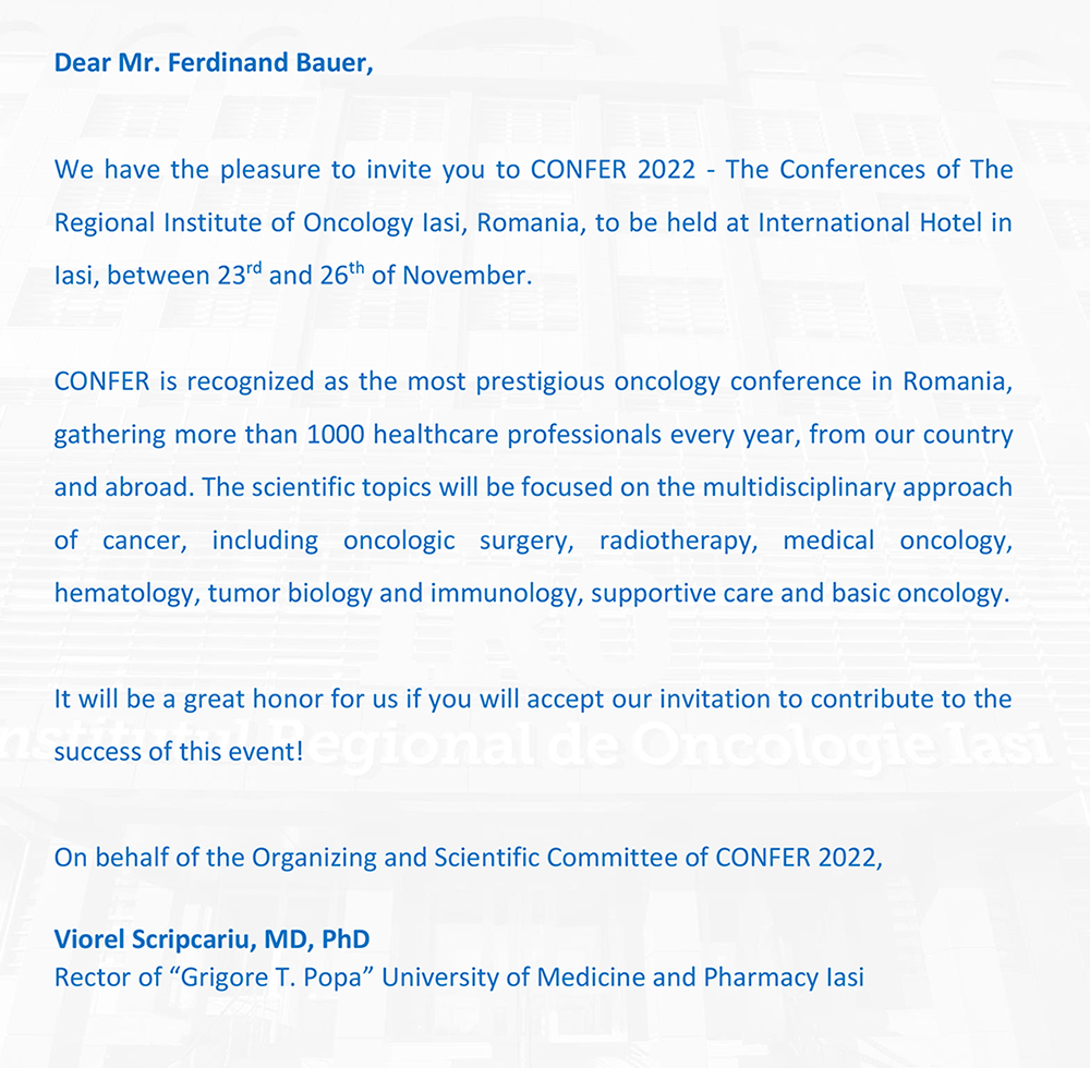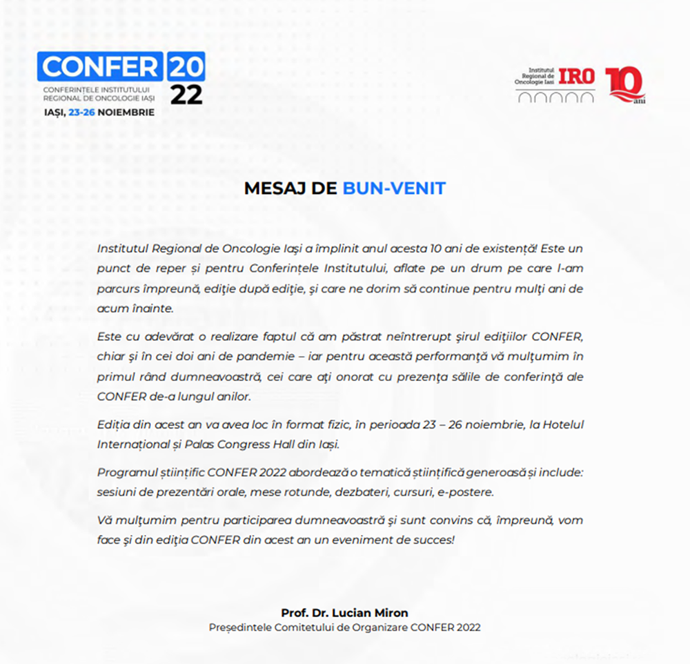 Conference 2022 – Conferences of the Regional Institute of Oncology Iasi